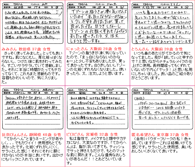 成分: タルク、マイカ、シリカ、ミネラルオイル、メチコン、シルク、ジメチコン、パープルオロアルキルリン酸DEA、グリチルリチン酸2K、デヒドロ酢酸Na、酸化チタン、酸化鉄、酸化亜鉛